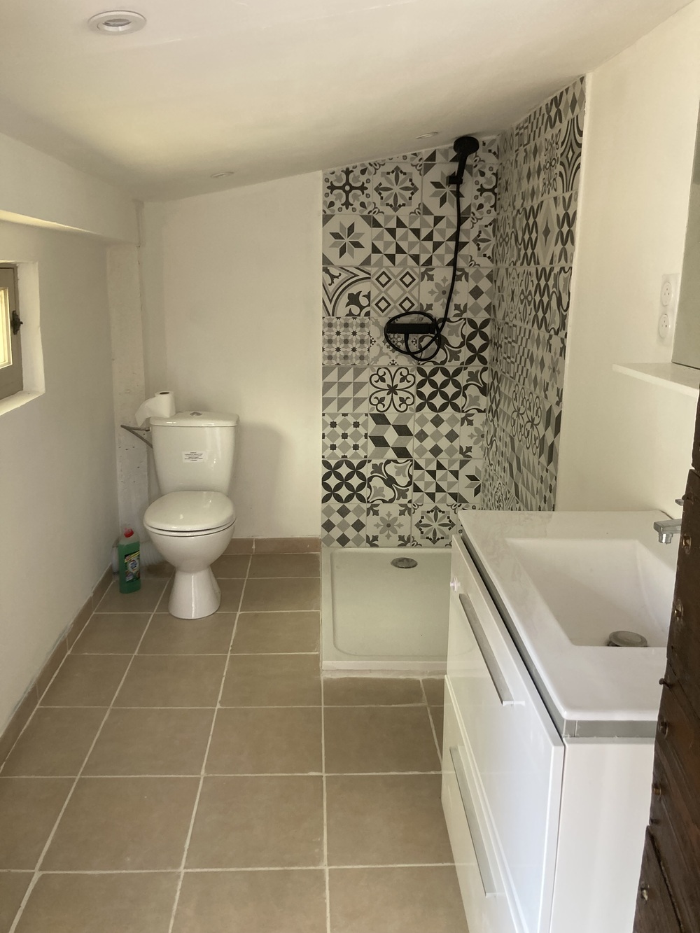 Il comprend 1 entrée, 1 séjour avec cheminée, 1 chambre, 1 salle d'eau, 1 cuisine, vous bénéficiez également d'une salle d'eau avec WC attenante à la maison.