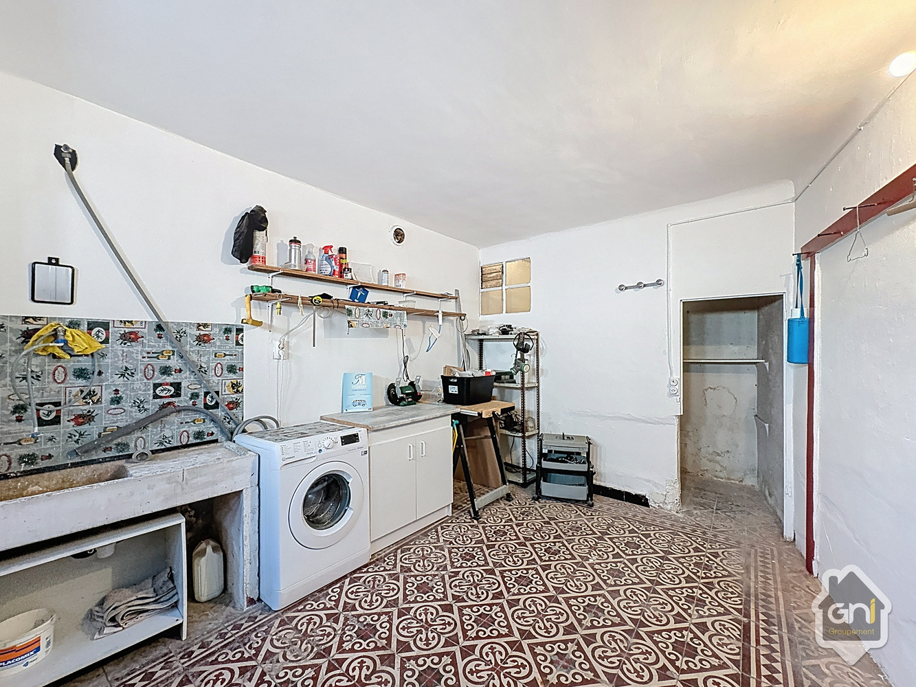 Une maison de village avec entrée par rez-de-chaussée sur un couloir desservant d'un côté un garage et de l'autre un cellier.
