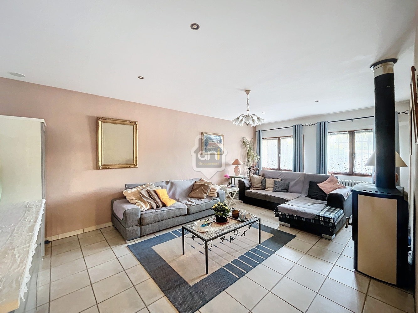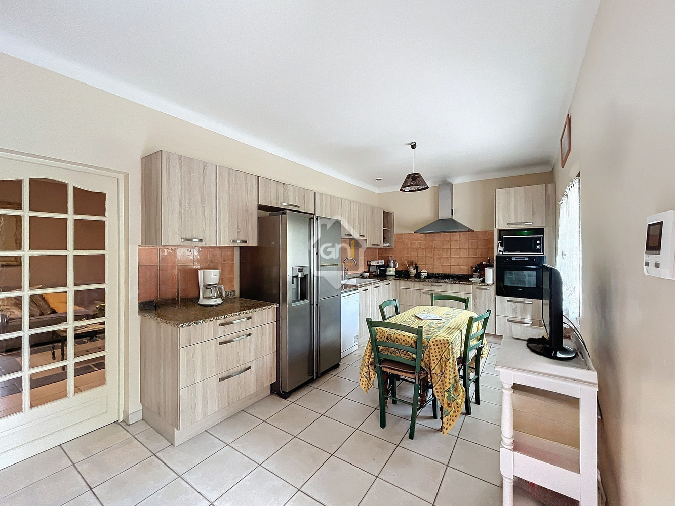 Une Maison en pierre de type 5, composée d'une entrée sur cuisine, un séjour/salle à manger, un couloir desservant trois chambres avec placards dont une suite avec wc, une salle d'eau avec wc.