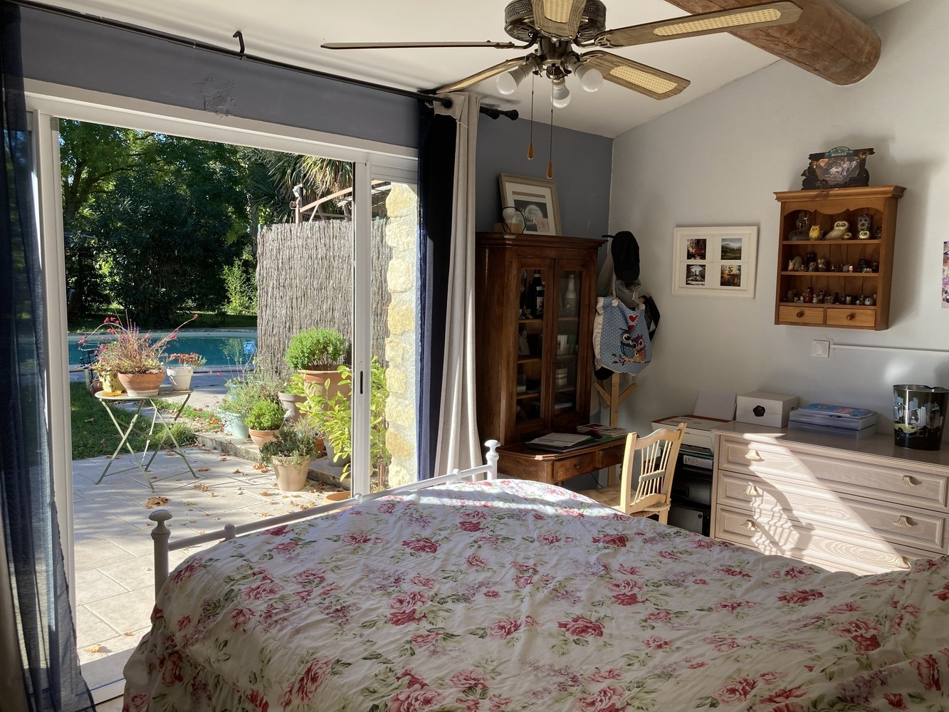 Les 2 séjours donnent sur des terrasses indépendantes avec vue sur piscine et jardin, le tout dans un calme absolu en zone agricole.