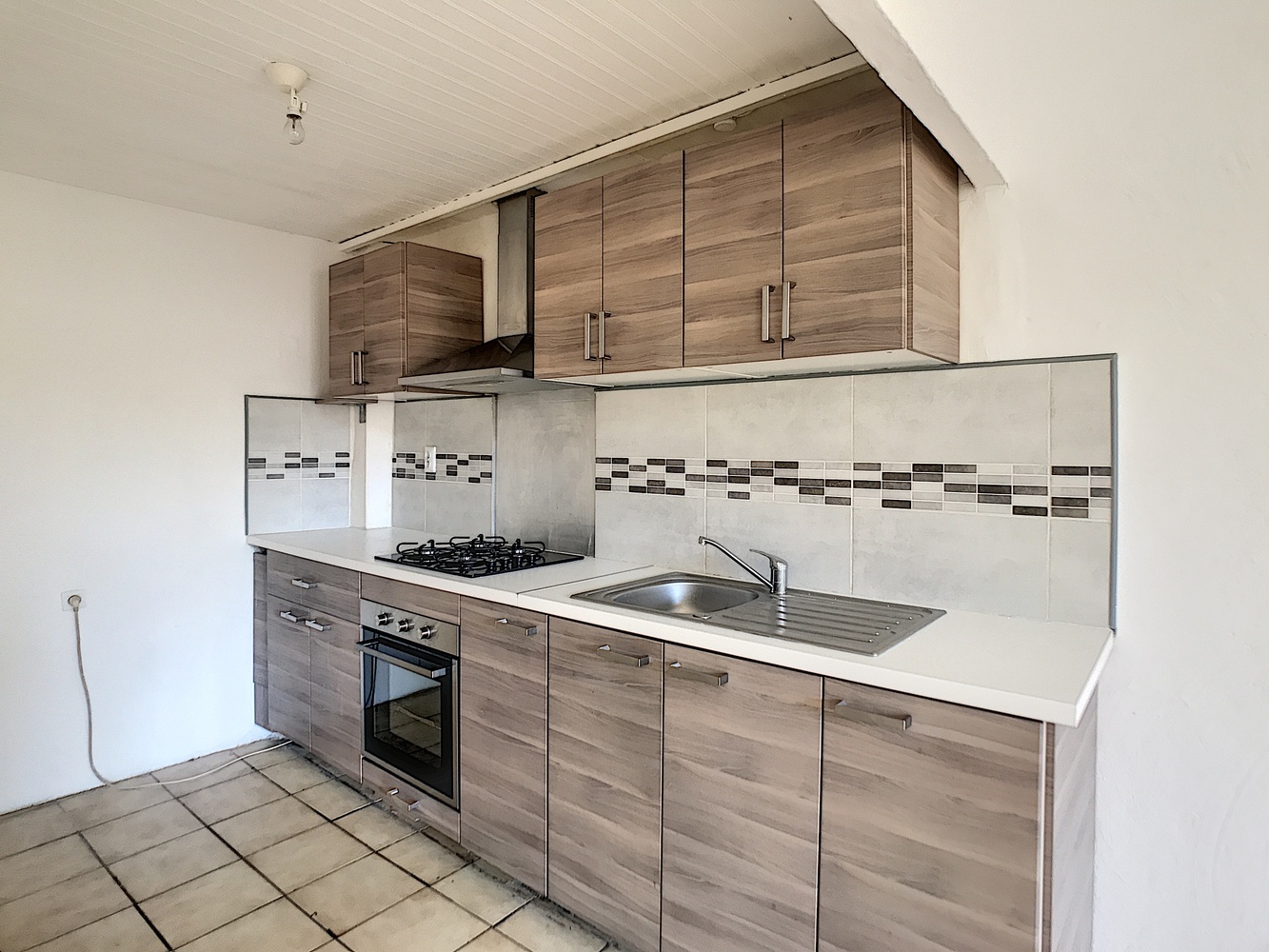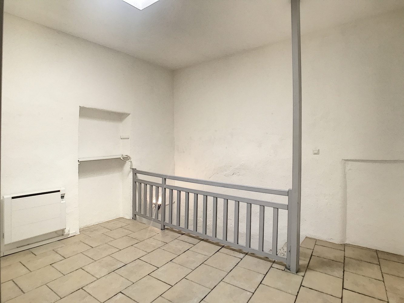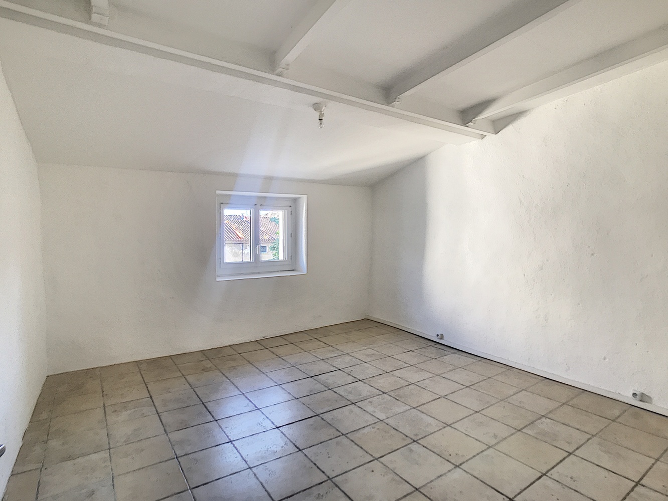 Appartement dans maison de Village composé d'une entrée par le garage, séjour/cuisine, espace bureau en mezzanine, dégagement, deux grandes chambres, salle d'eau avec WC.