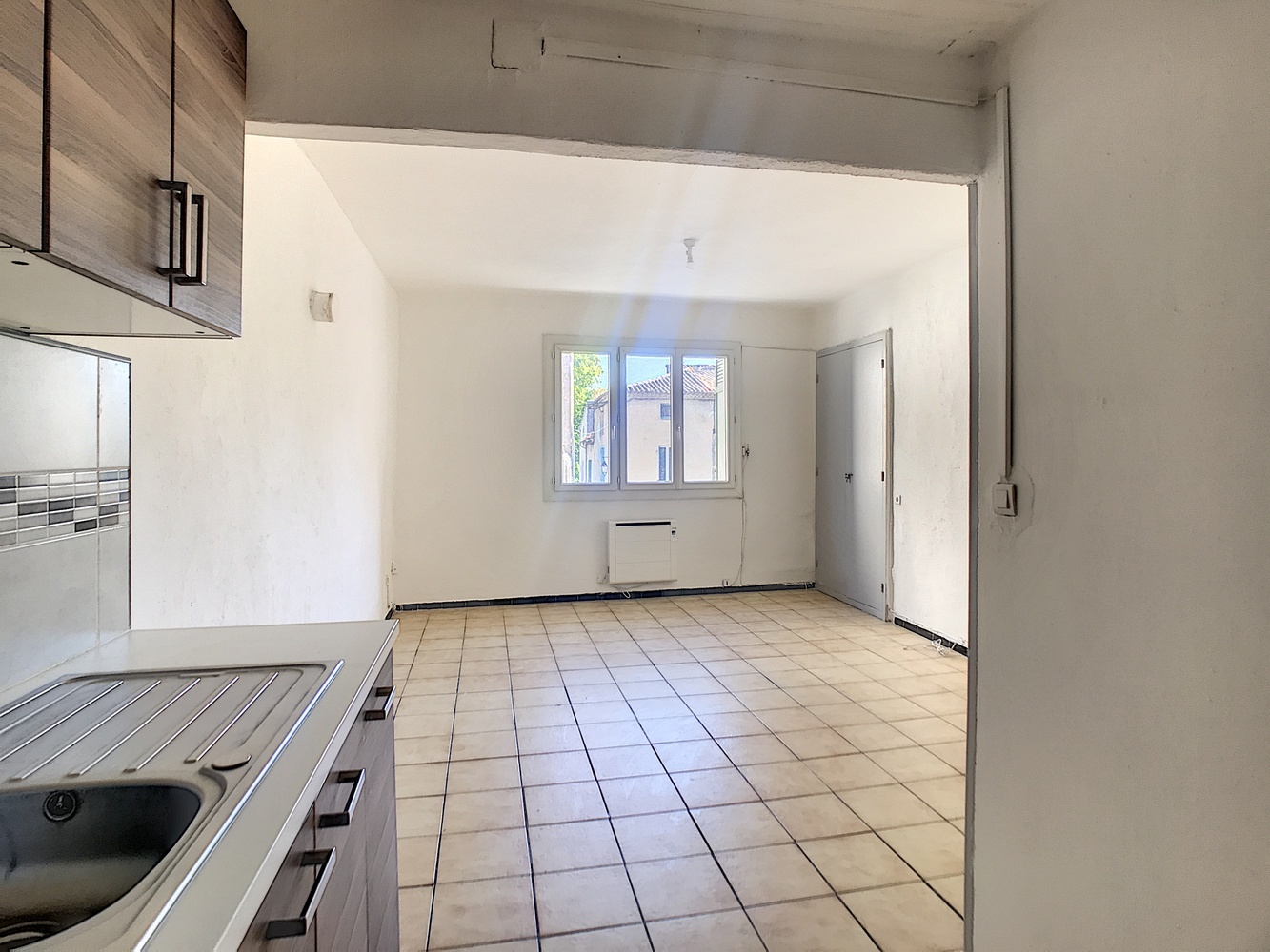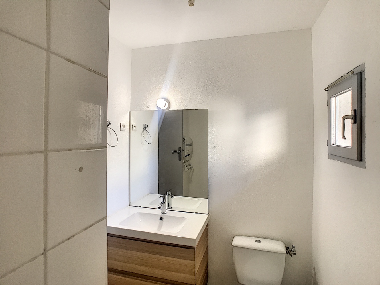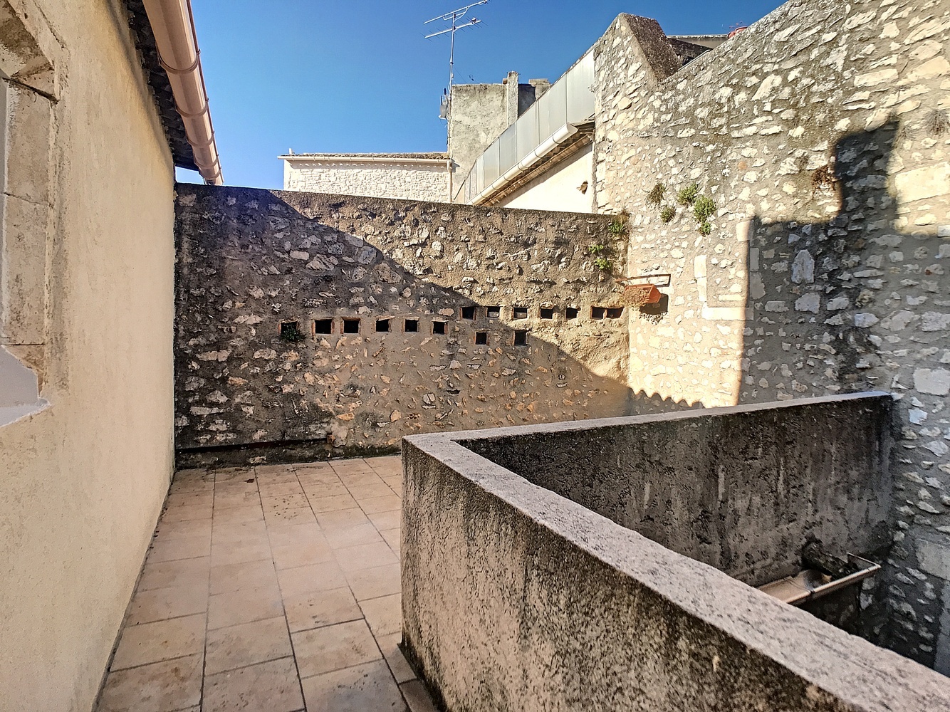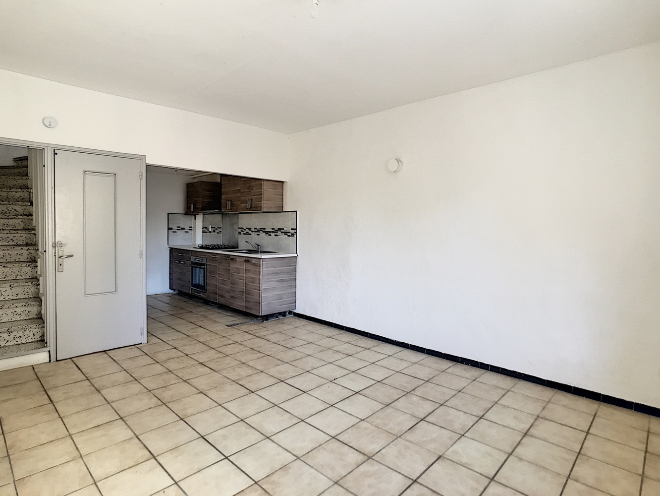 Appartement dans maison de Village composé d'une entrée par le garage, séjour/cuisine, espace bureau en mezzanine, dégagement, deux grandes chambres, salle d'eau avec WC.
